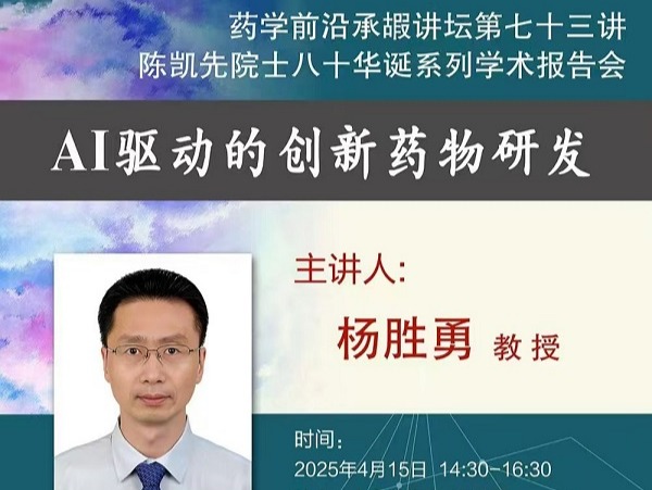 四川大学杨胜勇教授应邀作药学前沿承嘏讲坛第七十三讲